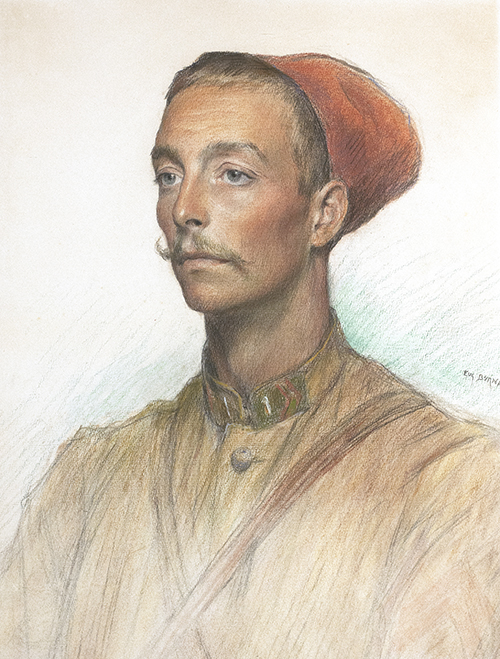 This portrait, which logically would have been placed after Zouaves 16 and 17 in the book, was omitted. This is one of the three pastel portraits that are in the Museum at Moudon. There is no commentary because only those in the Crete book have one.