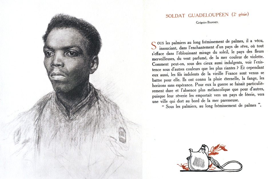 Under the palm trees with their ever-rustling branches he lived carefree, in the enchantment of a dream country, where everything becomes obliterated by the dazzling mirage of the sun, country of marvellous flowers, perfumed breezes, sea the colour of violets. How could someone used to living under such generous skies survive in a quite different and less pleasing climate? And yet these also, indolent sons of the old French empire, came to fight for her. They came to know the ceaseless rain, the squalor, horizons without hope. The war was particularly hard for them, and their absence from home sadder than for others, since their dreams carried them away towards a fairy land, towards a sleepy town on the edge of the lazy sea.