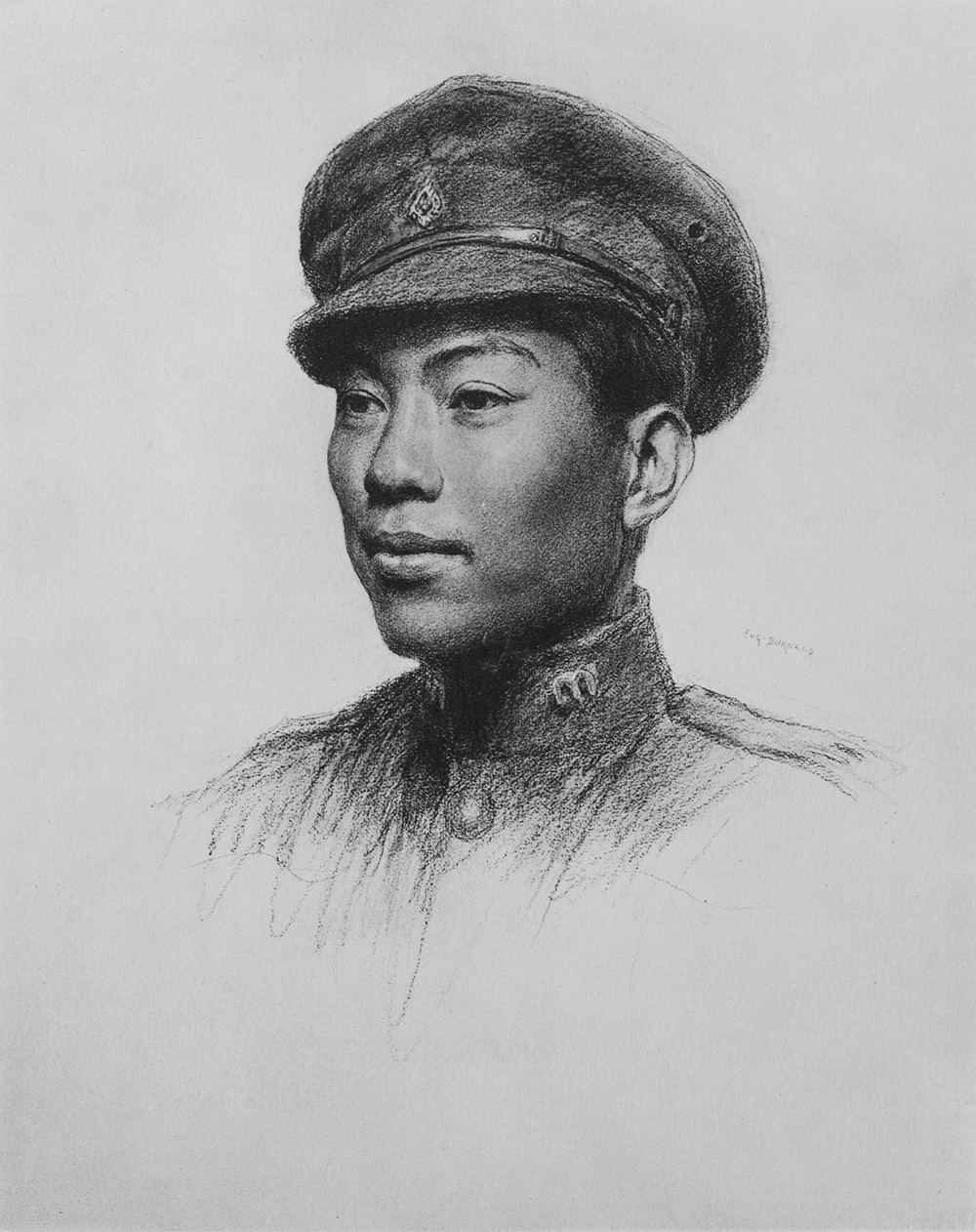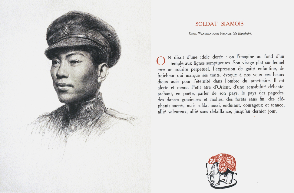 He might remind you of a golden idol: one imagines it in the depths of a sumptuously shaped temple. His flat face on which a perpetual smile wanders, he expression of childlike cheeriness, of freshness which tell of his character, evokes in our eyes those beautiful gods seated for eternity in the shadow of the temple. He is alert and slight. Small oriental person, of delicate sensitivity, knowing, a poet, to speak of his country, the country of pagodas, of graceful and gentle dances, of endless forests, of sacred elephants, but a soldier also, enduring, courageous and tenacious, valiant ally, unfailing ally, right up to the last day.