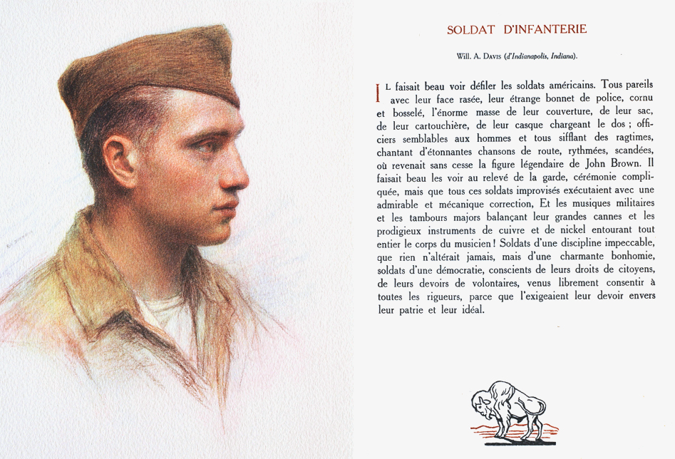 It was beautiful to see the American soldiers marching past. All similarly clean shaven, their strange police cap, pointed and embossed, the enormous bulk of the coat, the knapsack, their cartridge pouches, helmet loaded on the back, officers similar to the men and all whistling in ragtime, singing wonderful marching songs, with stressed rhythms, always conjuring up the legendary figure of John Brown (see in Wikipedia). It was beautiful to see them perform the complicated changing of the guard ceremony that all the soldiers took a part in and was executed with admirable and mechanical precision. And the military music and the drum majors balancing their big batons and prodigious instruments of copper and nickel completely encircling the body of the musician! Soldiers of impeccable discipline, that nothing ever altered, but with a charming friendliness, soldiers from a democracy, they knew their rights and obligations as volunteers, having come of their own free will, consenting to all the rigours, because their duty to their country and their ideals demanded it.