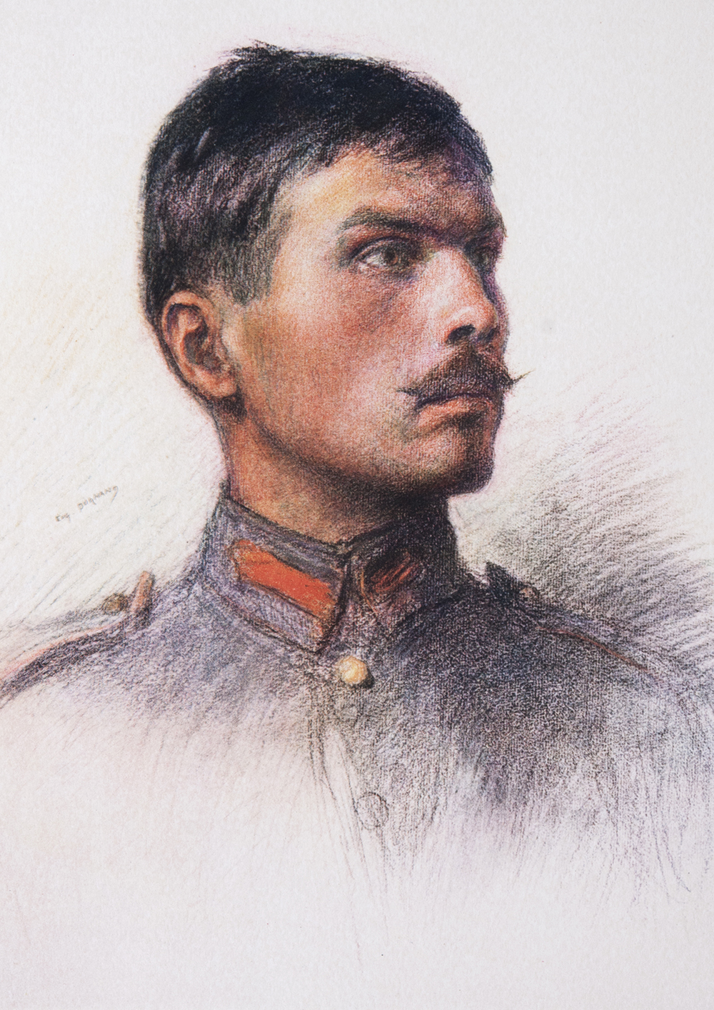 crossed France when everyone learnt Romania had entered the war! After the long night of Verdun, the anguished hours of thinking all was lost, it seemed the sun rose on the world again. This new ally who was bringing into the balance the weight of its bayonets, its canons, its faith; made our hearts leap. And, when it had to abandon " the many and high hopes", when the bereavement, the invasion fell on valiant Romania, abandoned, betrayed, no one thought of reproaching this army for having succumbed. On the contrary, one admired the ardour of its resistance. This is captured entirely in the proud face of the soldier who is presented here. The figure of an old latin race fighting for its youthful liberty, the lyricism of an artistic people, a people of musicians and poets and energy and at the same time a fiery spirit that nothing can quell, all that is brought together in this portrait, which is all action, all flame, all life.