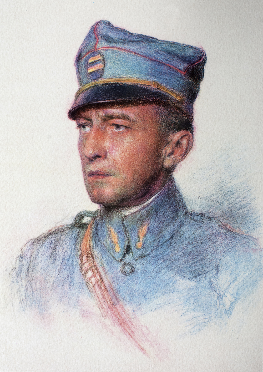The first time a Polish regiment turned up behind the French front it was to general surprise. Certainly all the men wore the sky blue trenchcoat, and helmet, although marked with an eagle, was almost the same as our own; they were lined up in the French manner; their machine guns, their vehicles were French, and so were their bayonets and rifles. But attached to all the bags, brandished on all arms, small amaranth (see in Wikipedia) flags fluttered over the column. The men spoke many of the world's languages: Russian, English, Italian, and German too. By what miracle of patriotism has such a group become a powerful army? The idea of the old homeland, dismembered, fragmented for centuries, the white eagle enslaved by neighbouring empires, this dream of unification rediscovered, of a Poland alive and strong at last, has sustained all the bravery, garnered the wills, reunited in a solid bundle the efforts of all these individuals. Join this up with a love of France, always a faithful friend, the memories of ancestors, Poniatowski's red lancers, the long haired heroes of 48, and we can understand why these Poles fought in such a beautiful way. They have struggled for an idea. In the fine lines of this officer, this mysticism is apparent. He has faith, and it is the faith which has the rectitude of all the historic and diplomatic past; it is through this that Poland is reborn and through which she will live again.